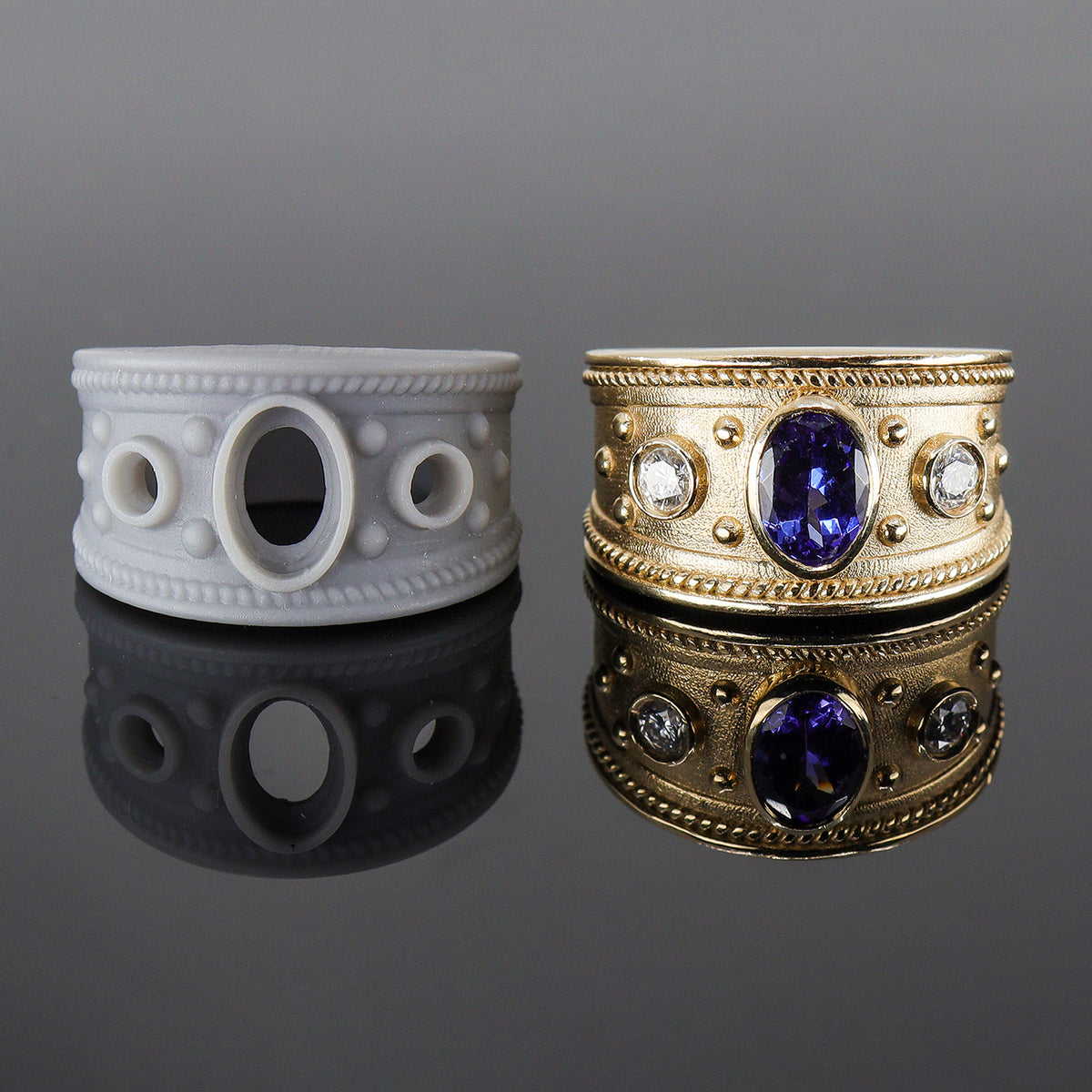 Bespoke 9ct Yellow Gold Tanzanite and Diamond Ring