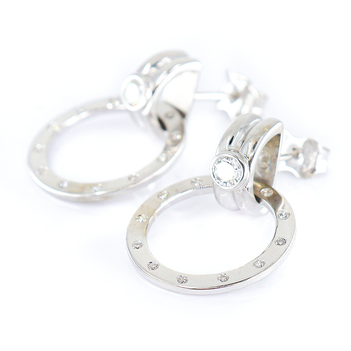 These drop earrings were specially made to match a necklace designed for our customers wedding day. Crafted in 9ct White Gold, diamonds from unworn jewellery were used in the design, featuring flush set diamonds. The rub set diamond bail was selected to compliment existing jewellery in a similar style.