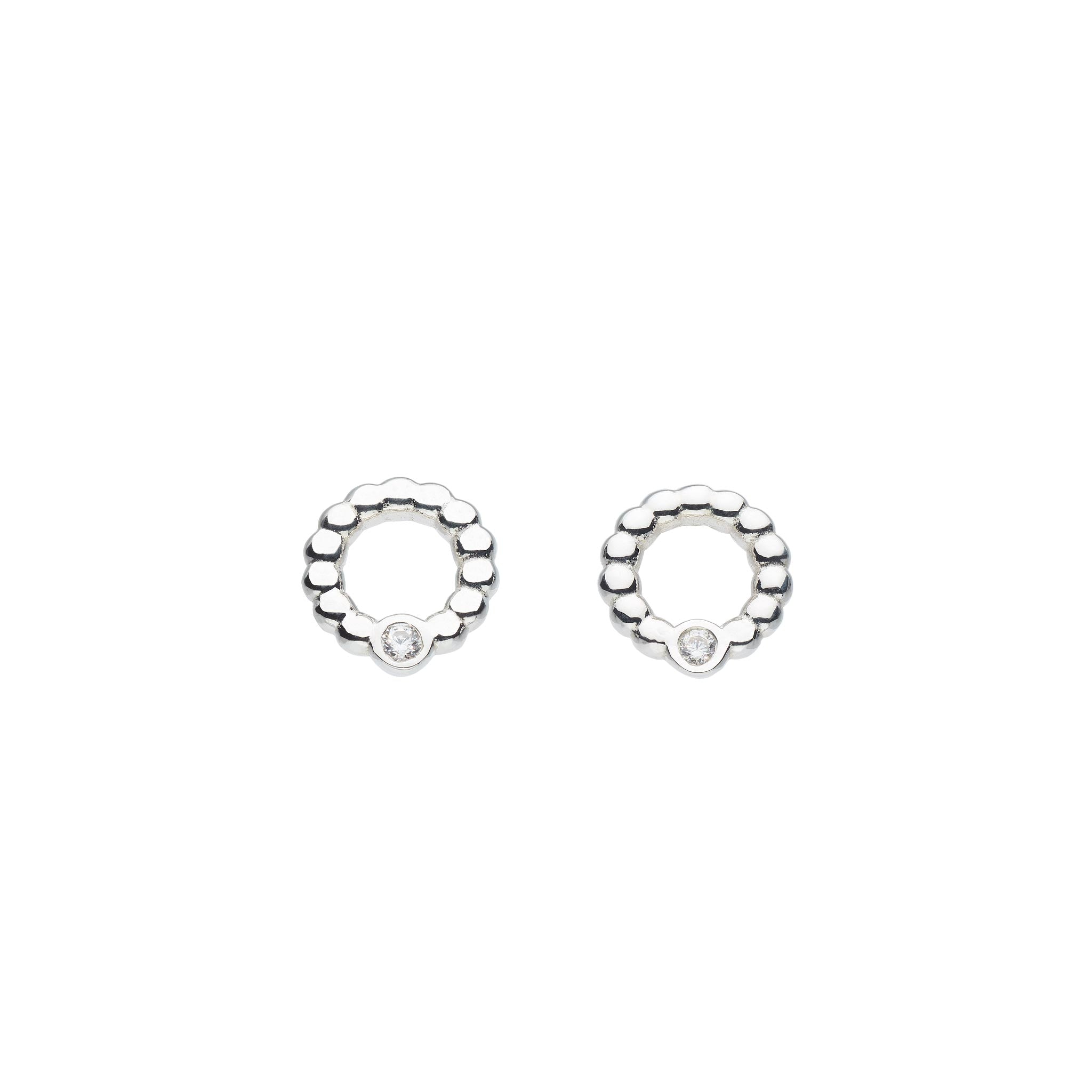 Dew Sterling Silver Cubic Zirconia Beaded Open Circle Stud Earrings