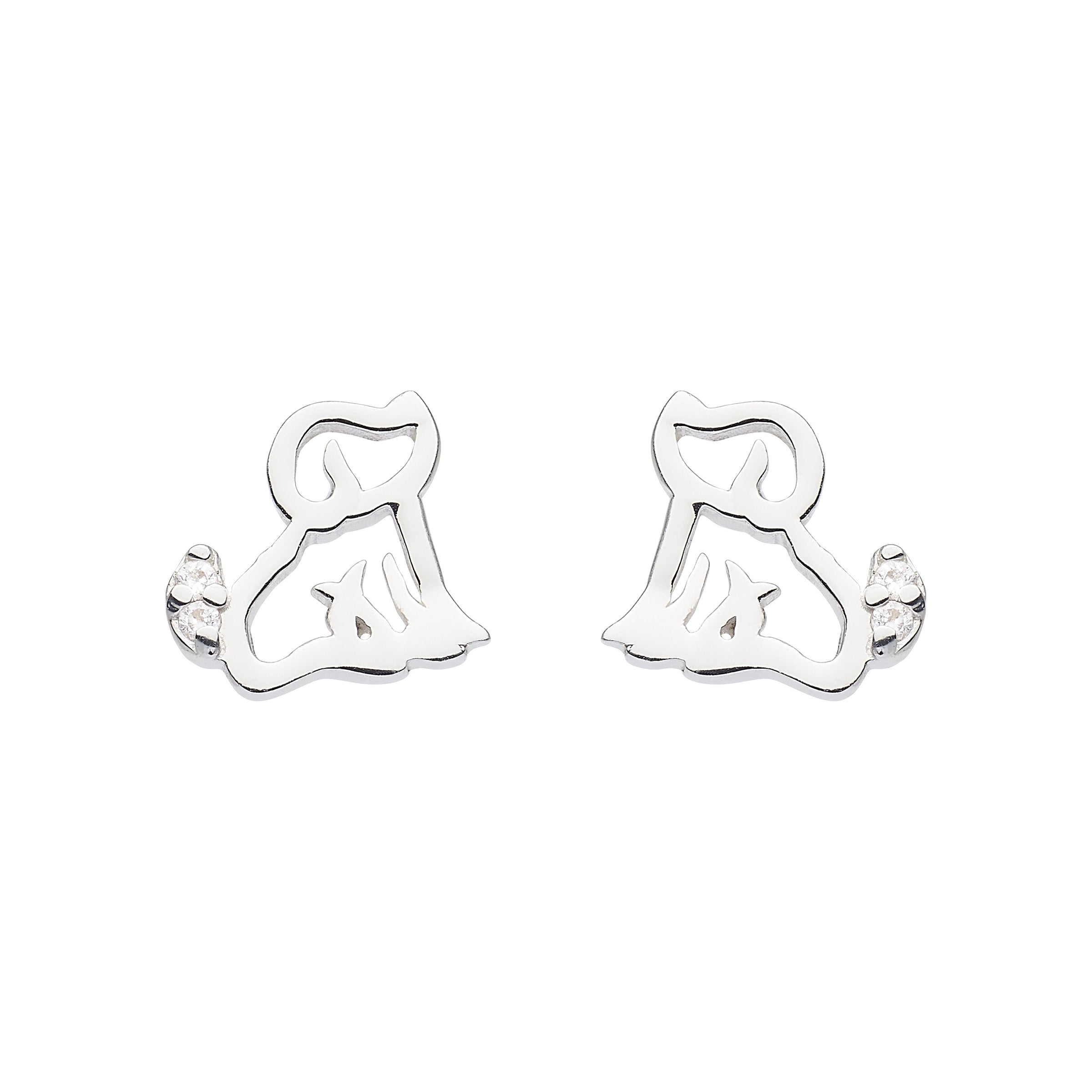 These dinky dog stud earrings are cut out in Sterling Silver details, their wagging tails are set with Cubic Zirconia stones.
