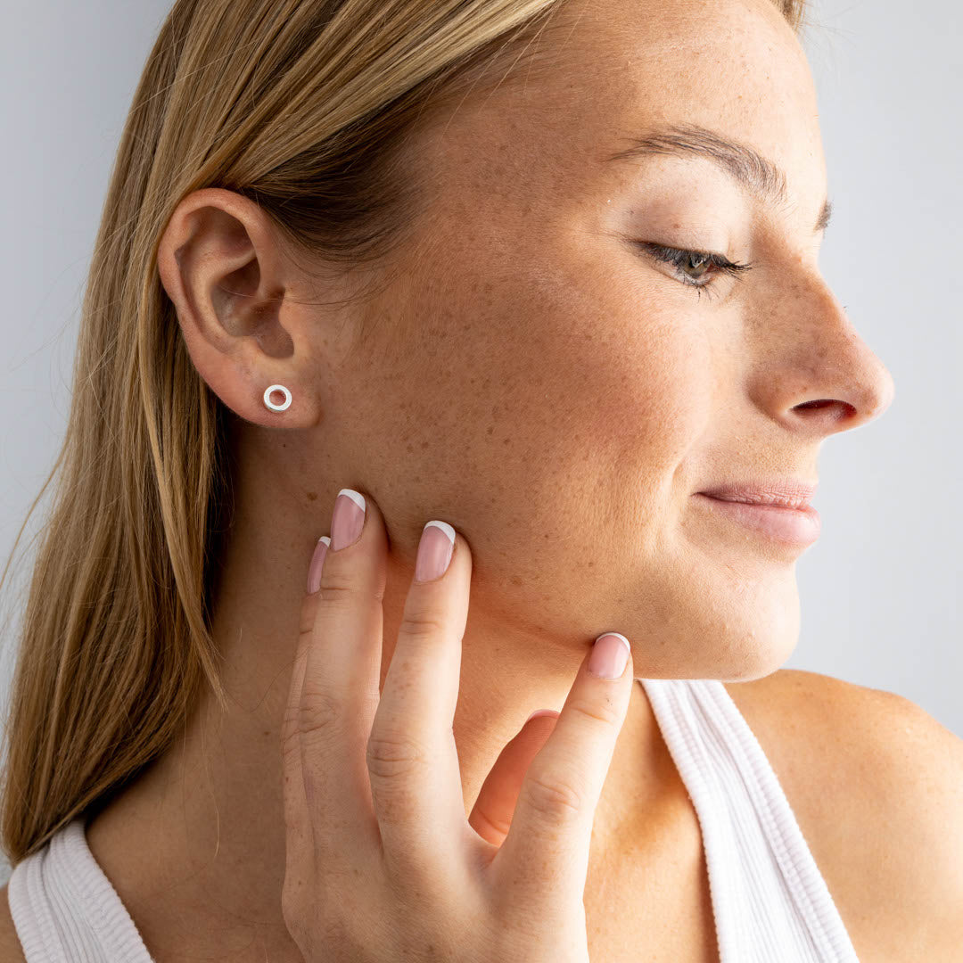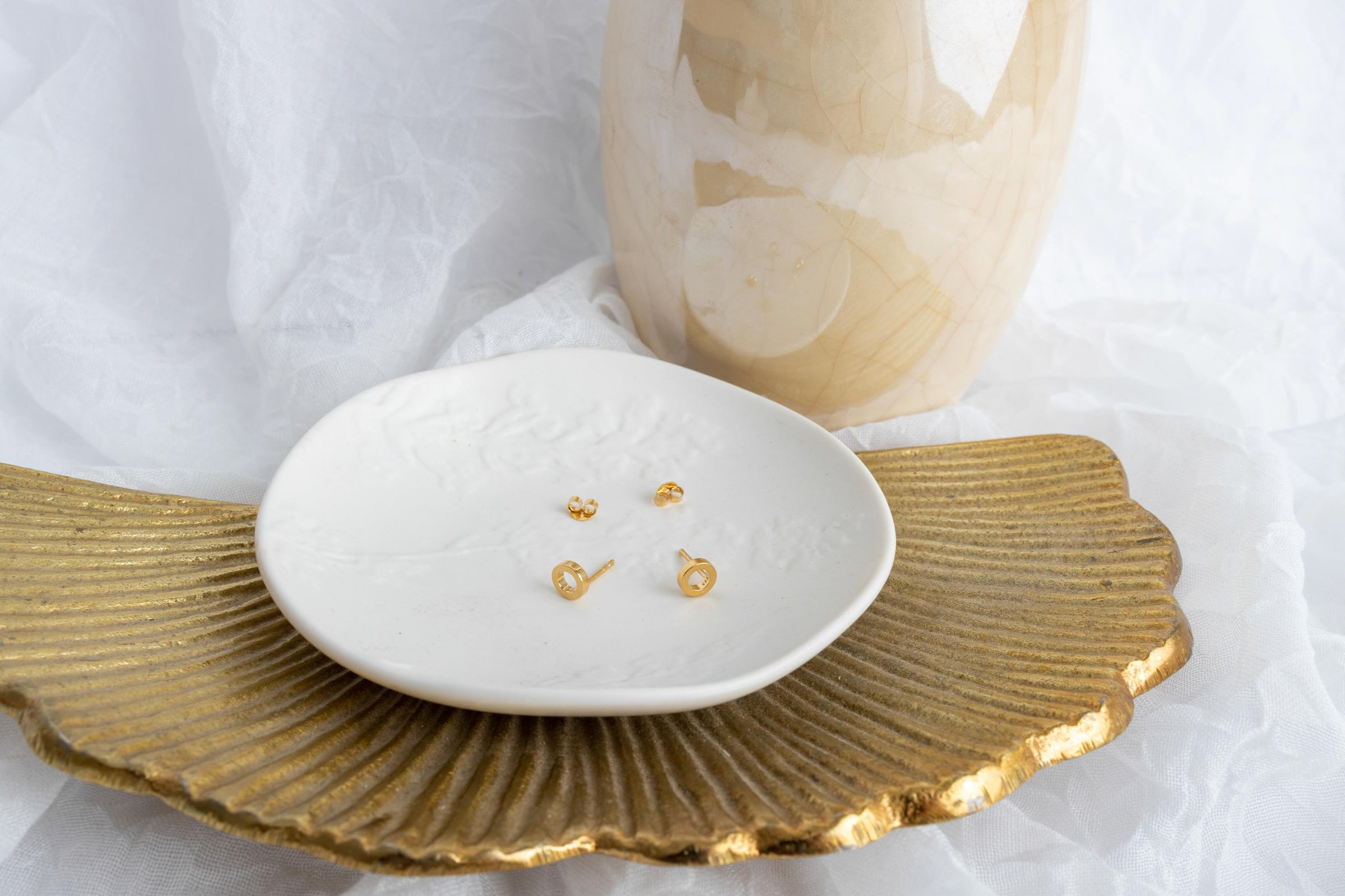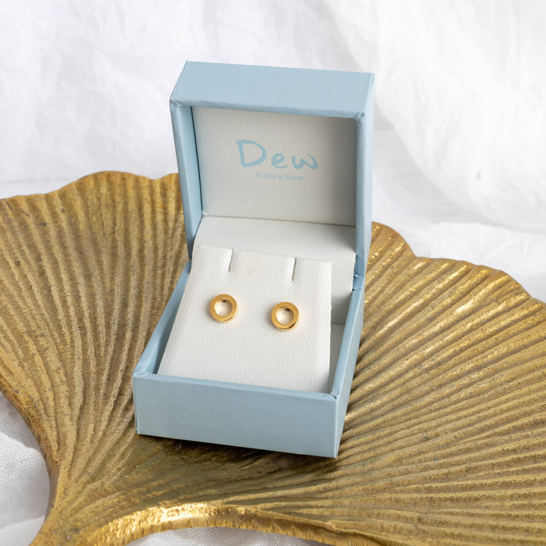 Sterling Silver Gold Plated petite polished open circle stud earrings.