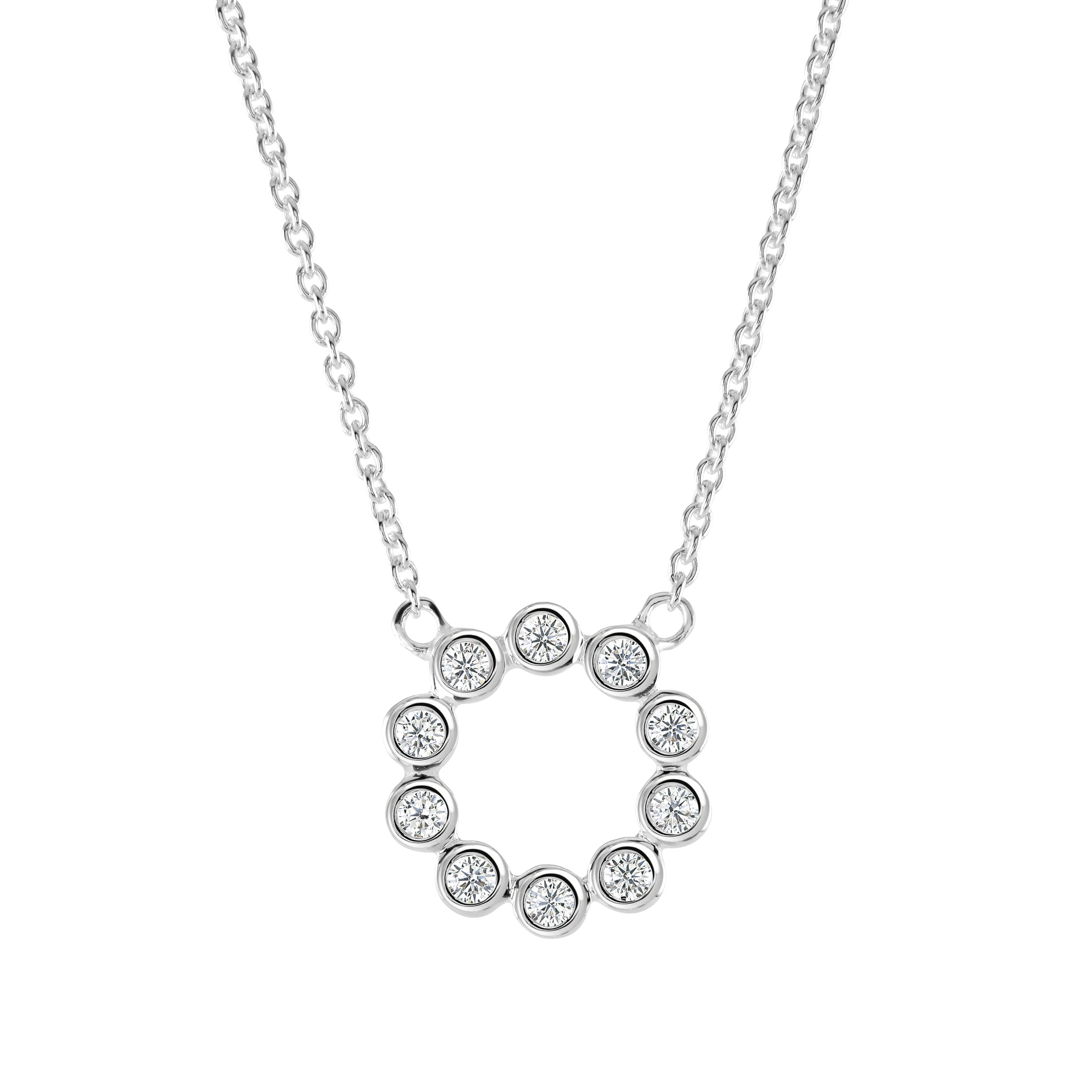 Dew Sterling Silver Open Circle Round CZ Necklace