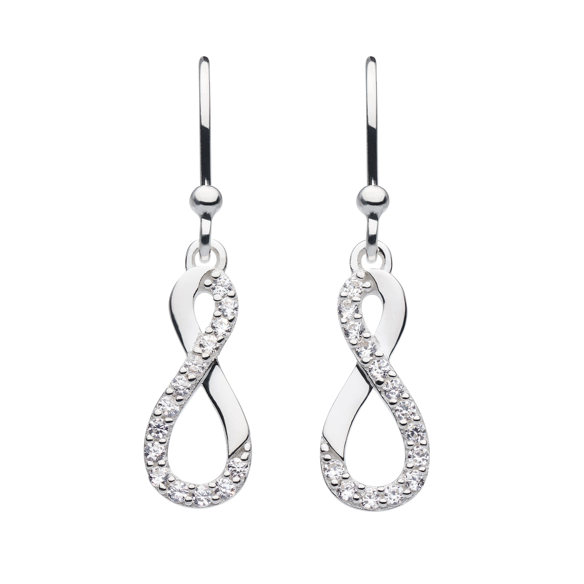 An iconic meaningful Sterling Silver Infinity Twist drop earrings set with sparking Cubic Zirconia.
