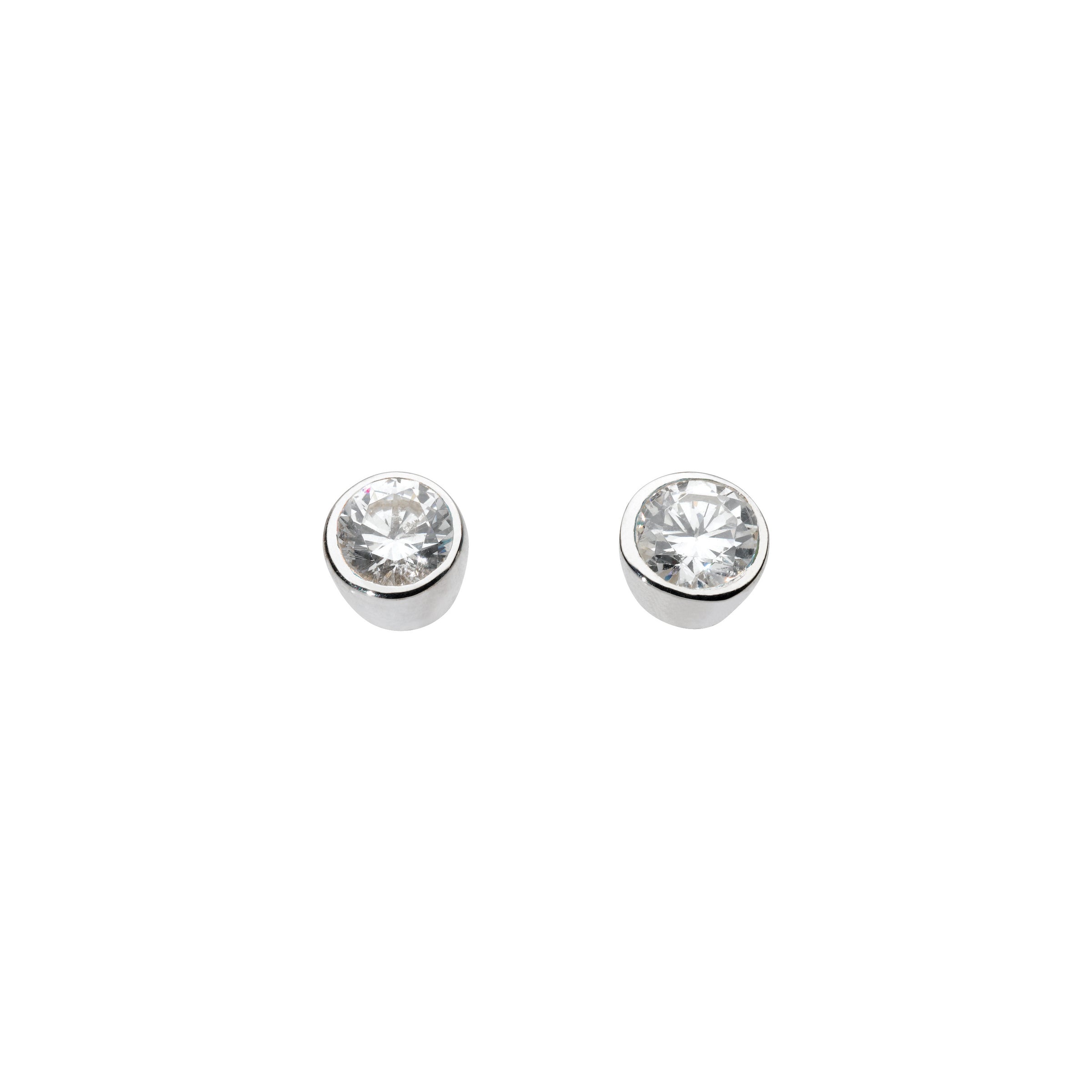 These delicate Sterling Silver round stud earrings are set with a sparkly faceted Cubic Zirconia stone.