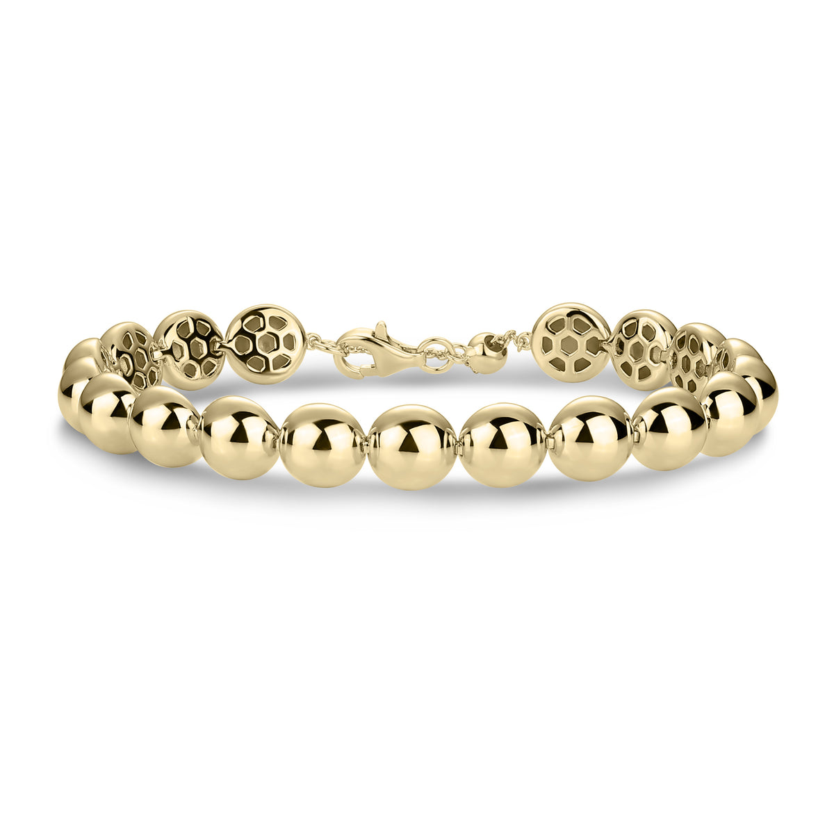 This 18ct Gold Plated Sterling Silver bracelet is an abstract and contemporary bracelet with highly polished semicircle links. This bracelet can be worn between 7" to 8.5" by adjusting the toggle fastening.