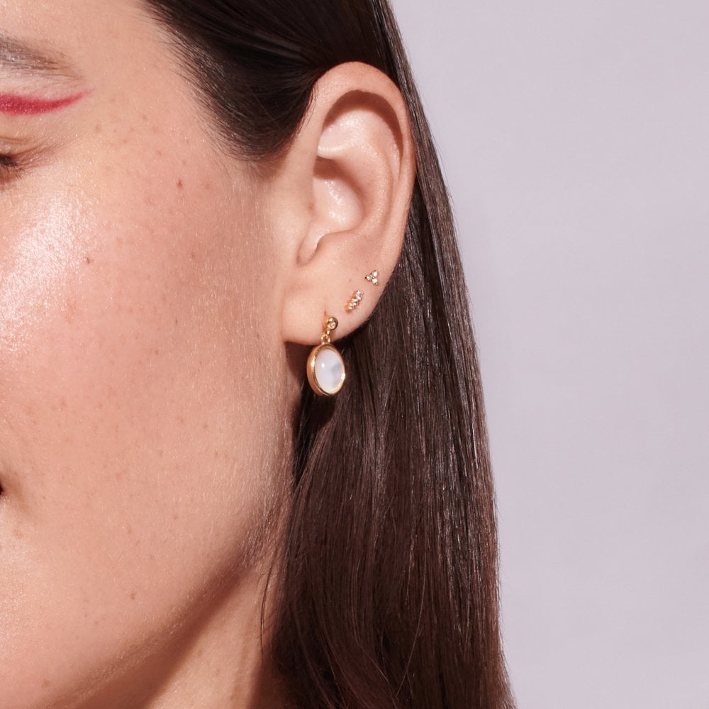 These gorgeous studs are perfect for stacking with huggies and ear cuffs, or worn on their own for a little bit of everyday sparkle. Crafted from Sterling Silver with 18ct Yellow Gold plate and hand-set with White Topaz and a real diamond.