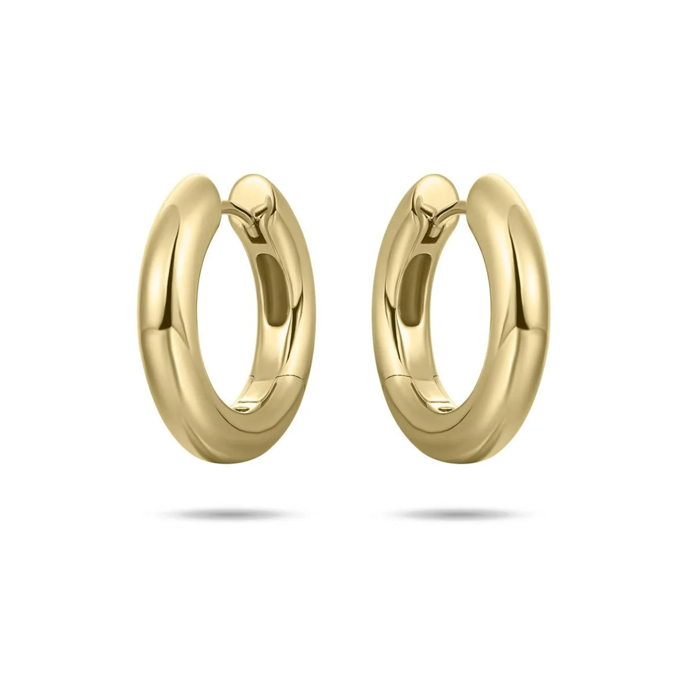 Bold yet timeless, these chunky 18ct Yellow Gold Plated hoops make the perfect statement piece. Their polished finish adds effortless style, ideal for elevating both everyday looks and special occasions.